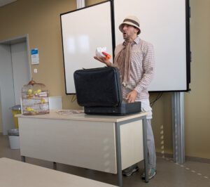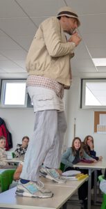 Auch in diesem Schuljahr konnten die Sechstklässler die „Odyssee“ nicht nur lesen und im Unterricht besprechen, sondern im Klassenraum erleben. Der Schauspieler Vivian Frey vom Meininger Theater machte „Die große Erzählung“ für alle zu einem greifbaren Erlebnis. Mit vollem Körpereinsatz und nur wenigen Requisiten hielt er die Spannung über eine ganze Stunde aufrecht und sorgte für kollektives Aufatmen, als die Hauptfigur Rico nach spannenden Abenteuern – einer echten „Odyssee“ – wieder den heimatlichen Bahnhof hier in Hildburghausen erreichte.