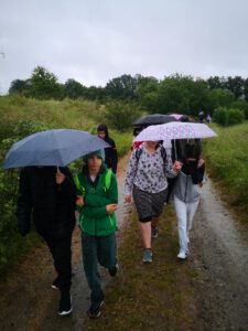 Wie schnell doch so ein (Schul)jahr vergeht! Das trifft besonders auf dieses zu, denn es endet schon am 19. Juni. Aber nichts kann uns davon abhalten, lieb gewordene Traditionen zu pflegen. So marschierten am Morgen des Montags (17. Juni 2024) die Klassen in kleinem zeitlichen Abstand los, um die von der Klasse 9R akkurat vorbereiteten Stationen der Sternwanderung zu absolvieren. Leider setzte sich an diesem Tag das für den diesjährigen Sommer so typische Regenwetter fort, sodass es pünktlich zum Abmarsch wie aus Eimern zu gießen begann. Wenigstens war es nicht kalt, aber vollkommen durchnässt und schmutzig waren am Ende doch alle. Trotzdem gab es an den einzelnen Stationen viel Spaß und jede Menge körperliche und geistige Herausforderungen. So dienten Fichtenzapfen zum Büchsen- und Zielwerfen und das klassische Eierlaufen funktioniert auch mit Kiefernzapfen. Einen Luftballon gemeinsam über eine bestimmte Strecke zu befördern, klingt erstmal einfach, wird aber wesentlich schwieriger, wenn man ihn gemeinsam mit einem Partner an der Stirn halten muss – und das bei strömenden Regen. An der Quizstation waren dann die Denker gefragt und beim Erraten aktueller und älterer Songs konnten sich alle einbringen. Ein Klassiker ist das Spiel „Fühlen und Riechen“, bei dem kleine Alltagsgegenstände ertastet und benannt werden mussten sowie bekannte und weniger bekannte Gerüche zu identifizieren waren. Pünktlich zur Rückkehr an der Schule hörte das Regenwetter auf. Die traditionelle, vom Förderverein gestiftete Bratwurst konnte bei Sonnenschein verzehrt werden, gleichzeitig begannen Jacken, Hosen und Schuhe zu trocknen. Natürlich interessierten sich alle für das Ergebnis des Wettbewerbs, aber da mussten wir uns noch bis zum Mittwoch gedulden! Dort erfuhren dann alle, dass die Klasse 8b die meisten Punkte erkämpft hat und den Geldpreis des Fördervereins für die Klassenkasse entgegennehmen konnte.